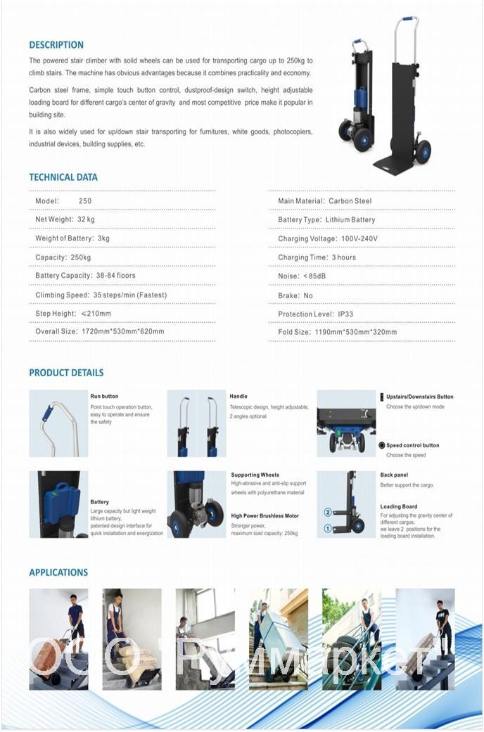 Тележка аккумуляторный подъемник по ступеням грузоподъемность до 250 кг.